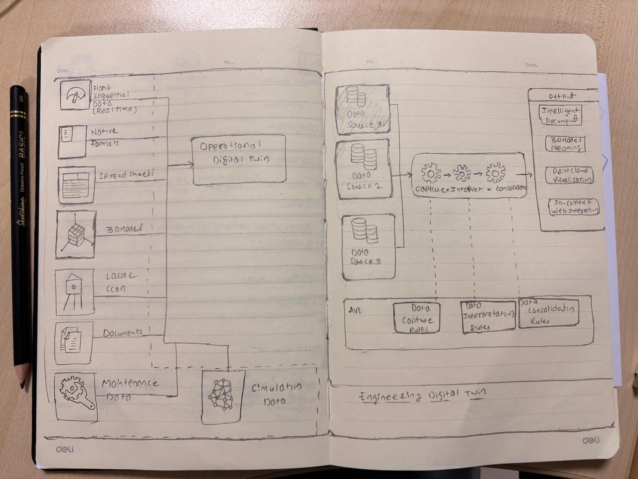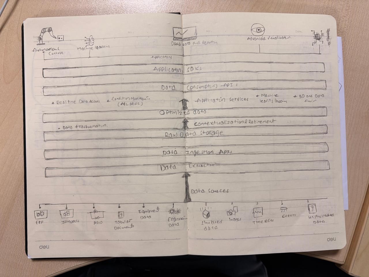 Visual notes on data flow architecture and integration patterns in digital twin systems.